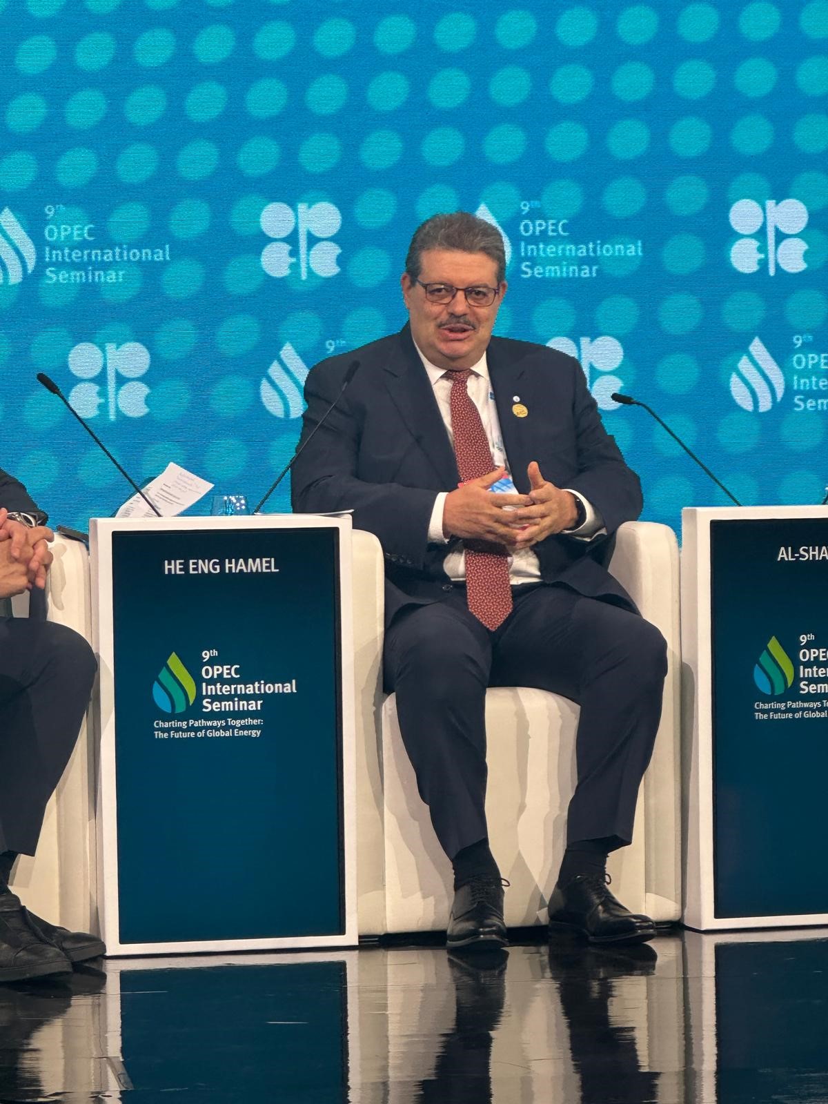 The session gathered distinguished leaders from across the global energy landscape to address the dual challenge of advancing climate goals while ensuring energy security, economic growth, and social inclusivity. In his remarks, H.E. Hamel underlined the pivotal role of natural gas as an enabler of a secure, reliable, and sustainable energy transitions. He emphasized that while the energy mix is evolving, natural gas remains essential in reducing emissions, providing flexibility to power systems, and supporting industrial and economic development, particularly in emerging markets. He also highlighted that global natural gas demand is expected to continue its robust growth, driven by rising energy needs in Asia and the Middle East, industrial expansion, AI data centers, and coal-to-gas switching in power generation. Reflecting on global energy trends, H.E. Hamel stated that the future of energy is indeed the “Golden Age of Natural Gas”, as the fuel continues to provide practical solutions for a just and realistic energy transition. H.E. Hamel highlighted the success of the 9th OPEC International Seminar, notably through the richness of its high-level roundtables and discussions. He expressed his sincere appreciation to H.E. Haitham Al Ghais, Secretary General of OPEC, for his outstanding leadership and the remarkable organization of the event.