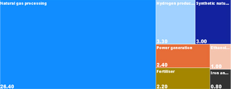Figure 2: CO2 capturing existing capacities in 2020 by source of CO2 in MtCO2/year