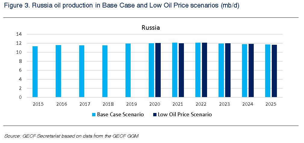 Brent crude could fall to the low $9-$20s per barrel for the global market according to some energy and investing companies (e.g. Goldman Sachs and Rystad Energy ). The combination of economic slowdown, weak oil demand and oversupply by OPEC+ countries could prolong low oil prices. Assume Brent and WTI crude prices are prolonged at an average $35 and $32 per barrel respectively for the remainder of the year and sustained till 2025. Under these conditions we analyzed the impact of a sustained period of low prices under the Low Oil Price scenario, compared to the Base Case scenario on the top-3 oil producers.